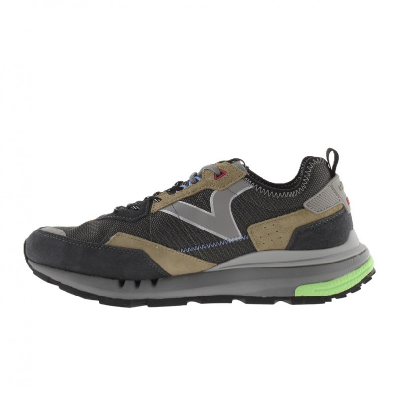 Deportivo para hombre de la marca Victoria. Las sneakers WING EVO-TECH para hombre, de la colección 1985, combinan estilo urbano y confort. Están fabricadas en nylon balístico con detalles en serraje vacuno y una V lateral en TPU. Su suela bicolor de caucho con diseño ergonómico ofrece excelente agarre, mientras que la plantilla de espuma aporta una amortiguación ligera y una pisada cómoda. Disponible en color negro y marrón