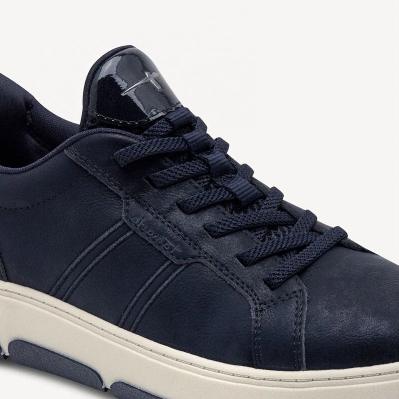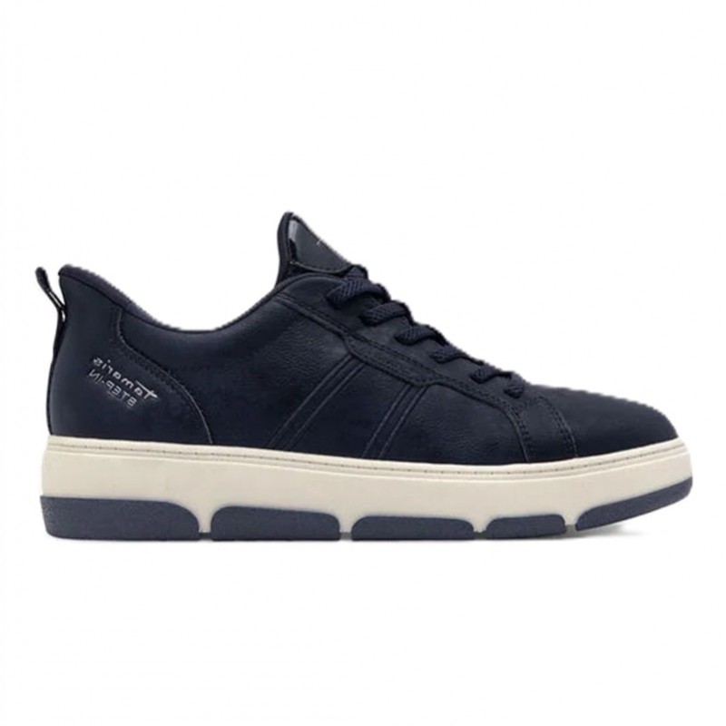 Material de cuero deportivo con suela de contraste, perfecto para atuendos casuales versátiles.