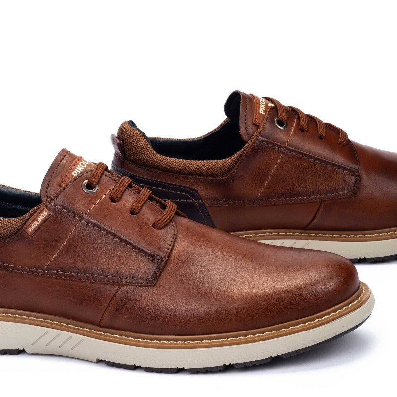 Descubre el confort de los zapatos de cordones Bilbao de Pikolinos. Con su suela ultraligera y plantilla extraíble, aportan suavidad en cada paso. Su diseño con cordones los hace versátiles y elegantes para el día a día. ¡Perfectos para caminar con estilo y comodidad! Disponible en color Azul  Cuero y Marrón.